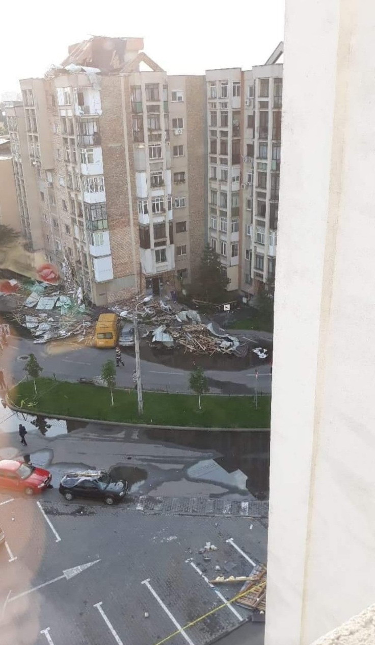 Furtuna care a lovit duminică orașul Craiova a făcut prăpăd într-un bloc ...