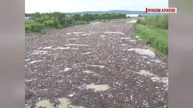 Inundaţiile şi ploile din ultima vreme au adus pe răul Buzău tone de gunoaie.