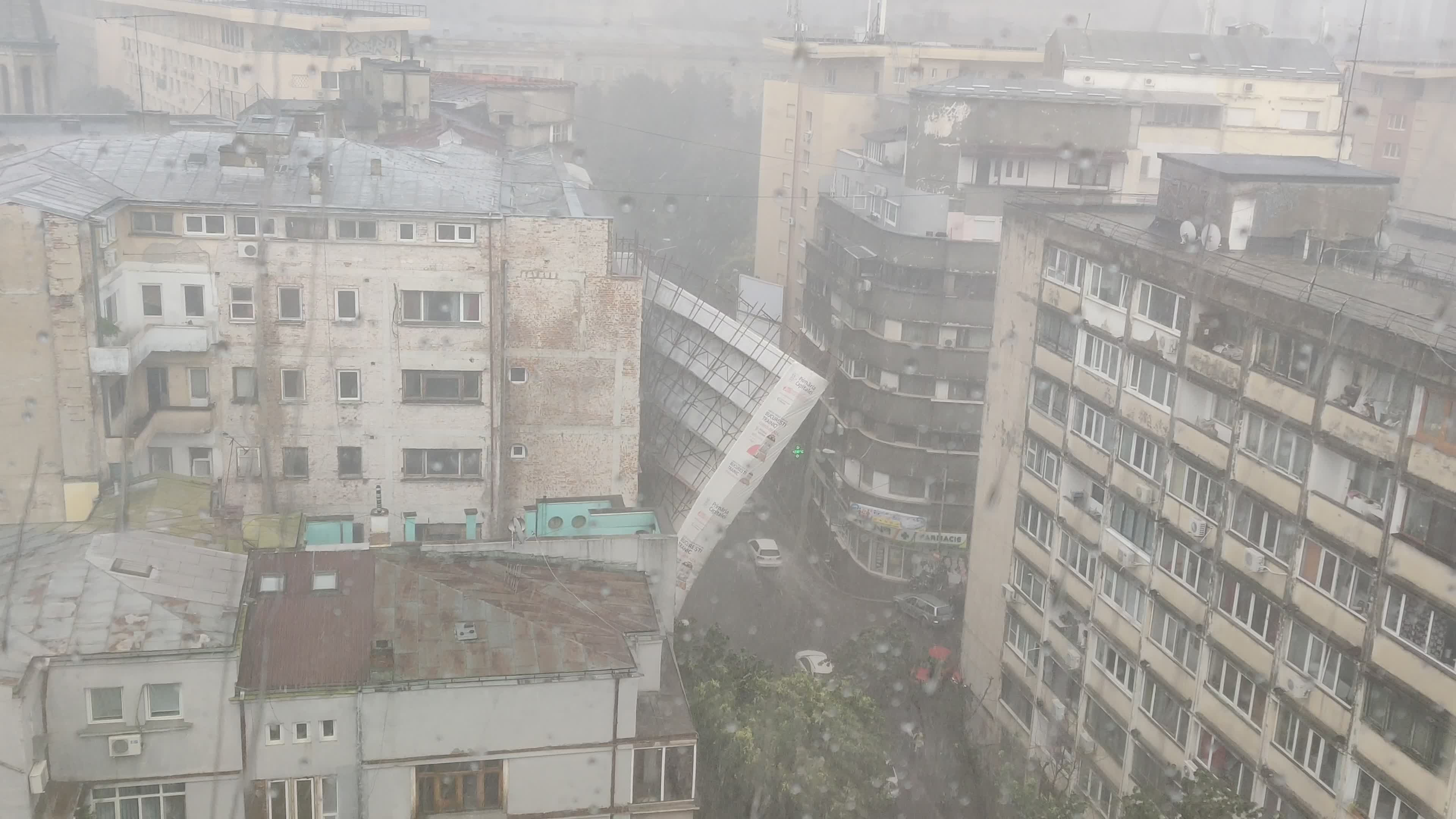 Două schele s-au prăbușit, vineri seară, în București, după o furtună puternică.