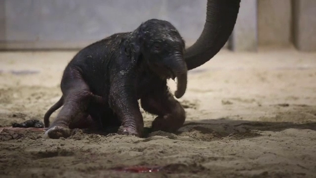Venirea pe lume a unui pui de elefant, femelă, într-un parc zoologic din Belgia, a ...