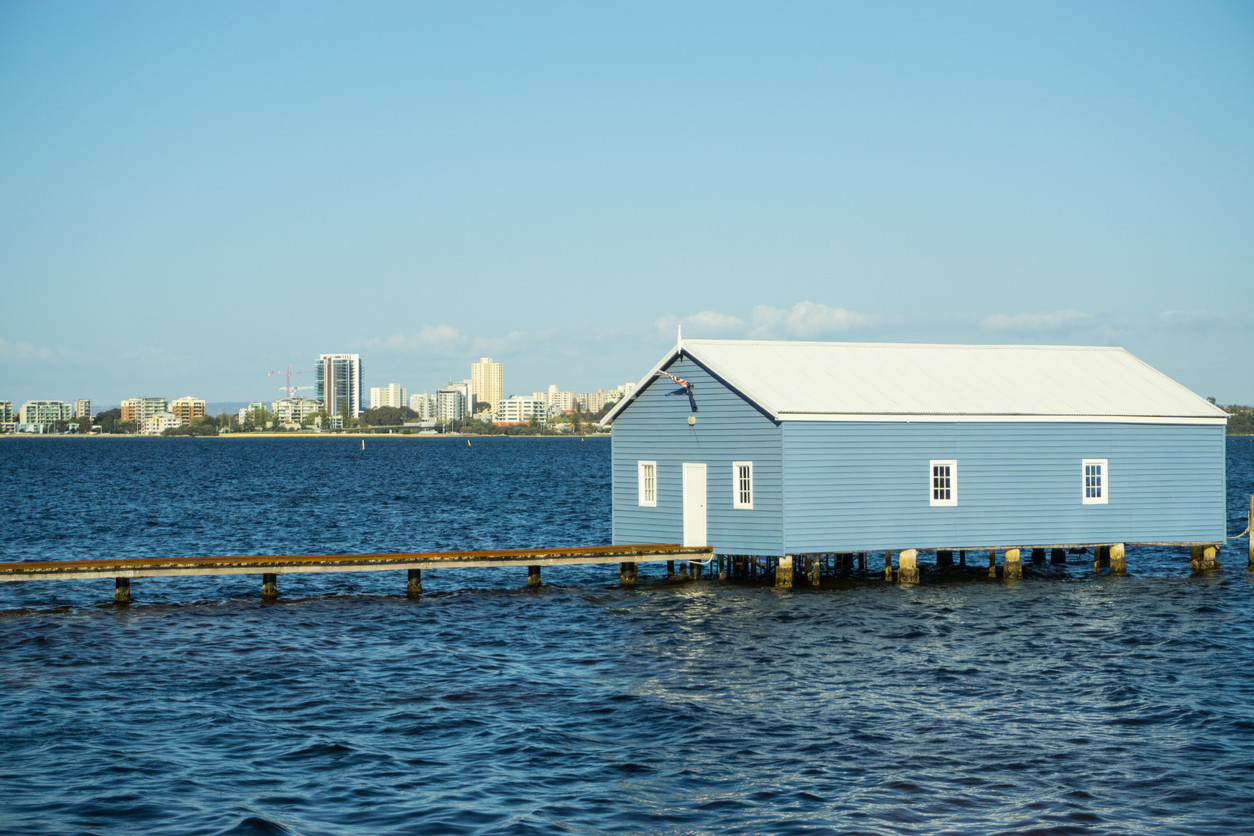 O căsuță albastră din lemn situată pe râul Swan a devenit atracția principală a ...