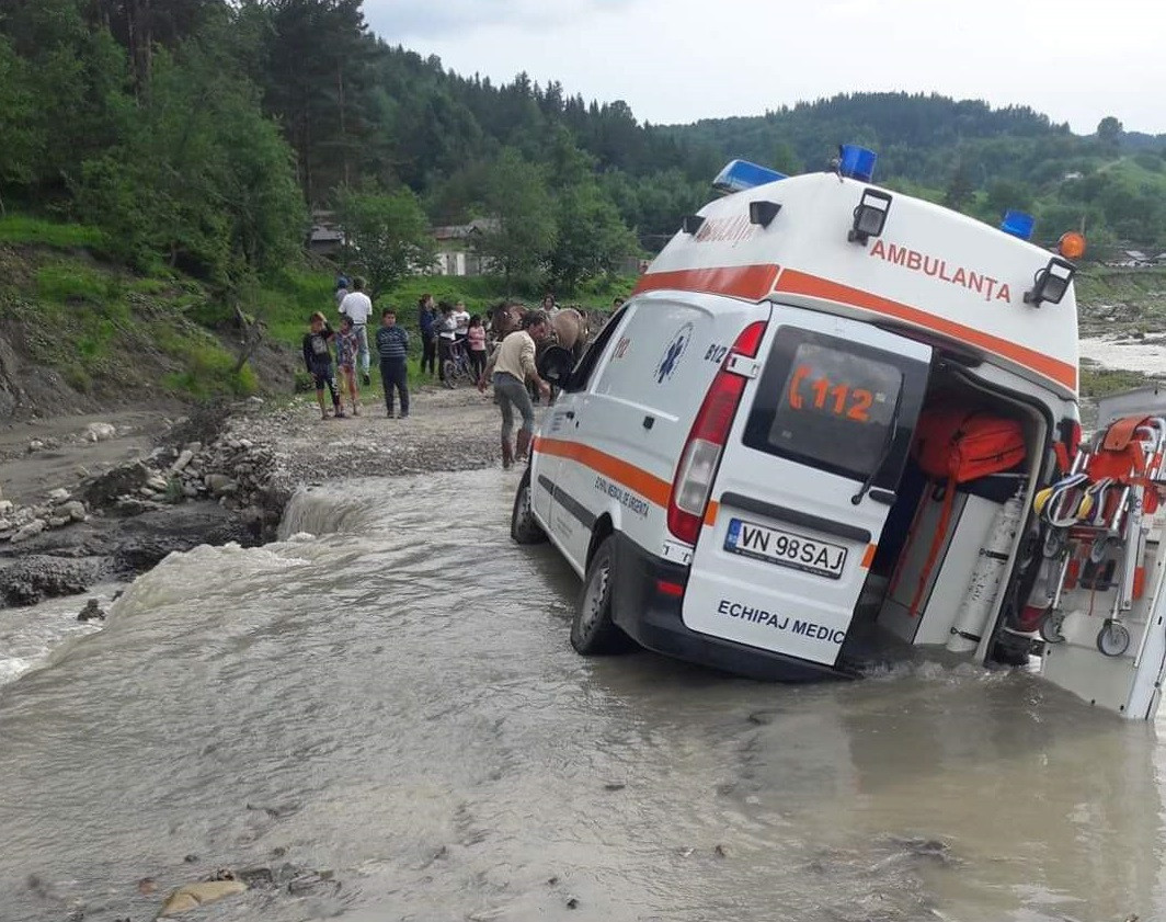 O ambulanţă care venise să acorde primul ajutor unei femei care a încercat să se ...