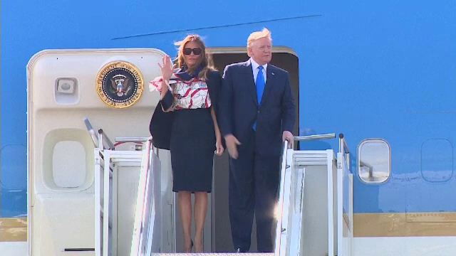 Președintele Statelor Unite, Donald Trump, însoțit de prima doamnă a Americii, a ...