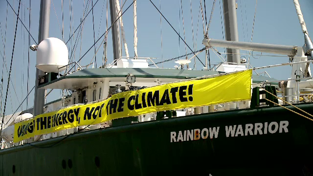 Nava Rainbow Warrior, împreună cu activiştii Greenpeace, a acostat, miercuri, ...