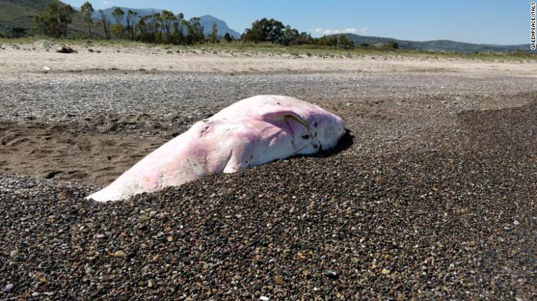 O balenă moartă, cu stomacul plin de plastic, a fost descoperită pe o plajă italiană, a ...