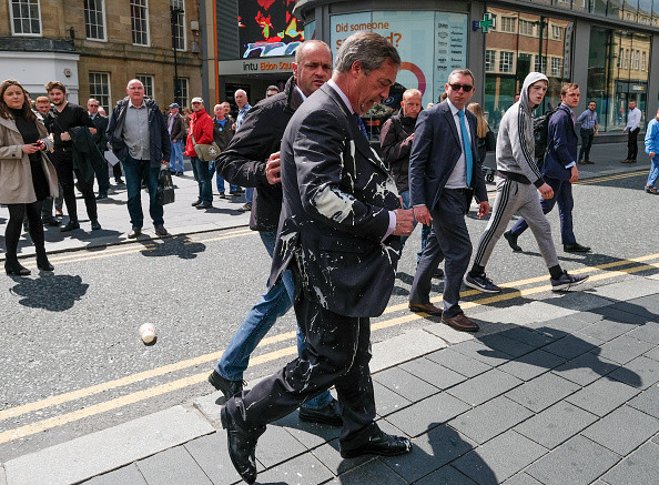 Nigel Farage, liderul Partidului Brexit, a avut parte de un incident neplăcut în ...
