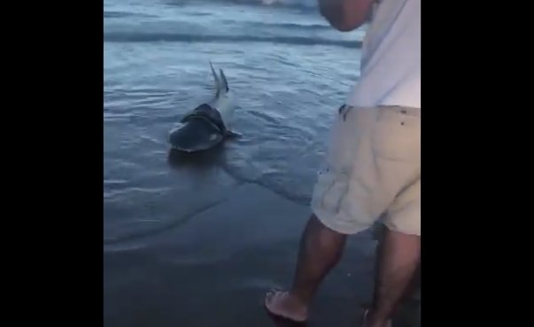 Un grup de turişti aflaţi pe o plajă din Australia a ajutat un pescar care încerca ...