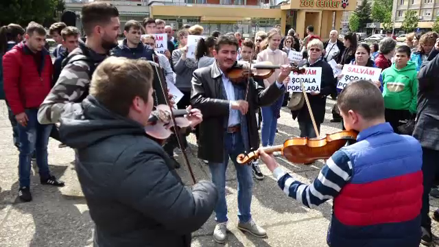 Protest "cu cântec" în Baia Mare! Dascăli şi elevi ai Şcolii ...
