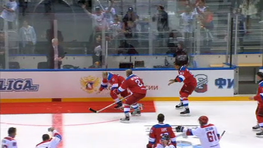 Vladimir Putin a luat o trântă pe gheață chiar la turul de onoare după un meci de ...