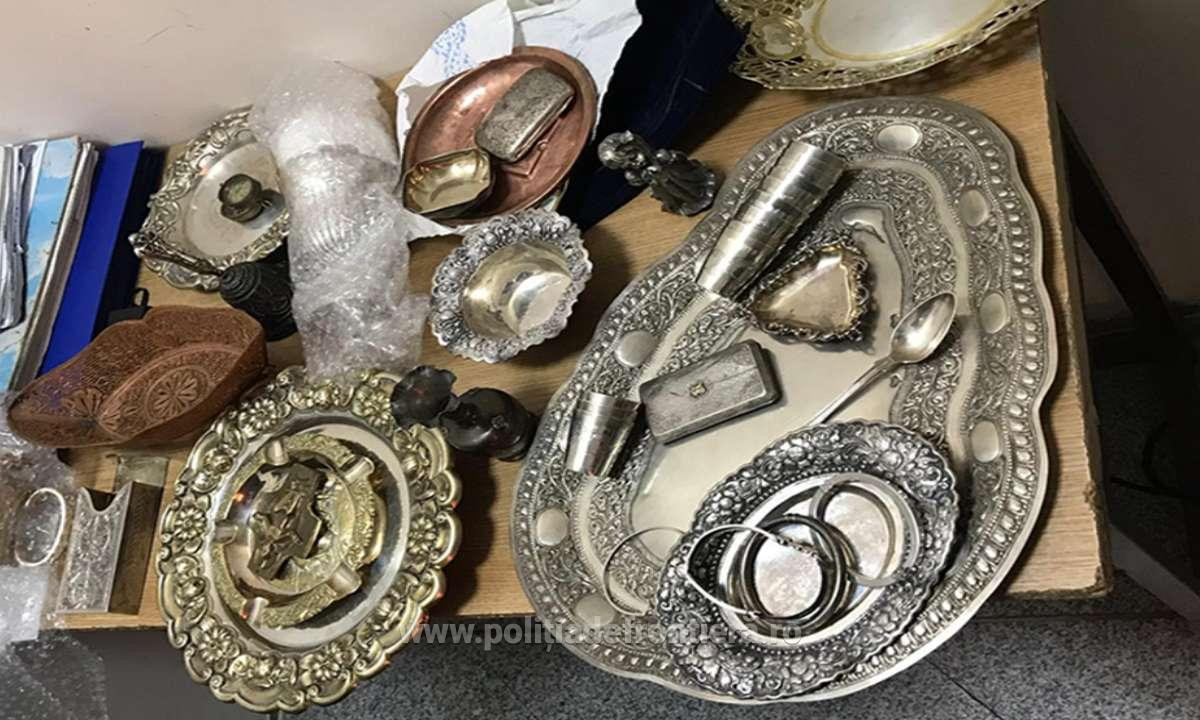 Peste 10 kilograme de obiecte vechi şi bijuterii din metal alb, presupuse a fi din ...