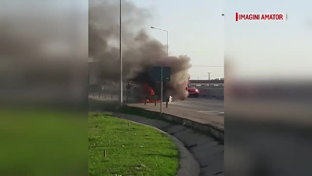 Clipe de groază, pe şoseaua de centură a municipiului Oradea. Un camion a luat foc ...
