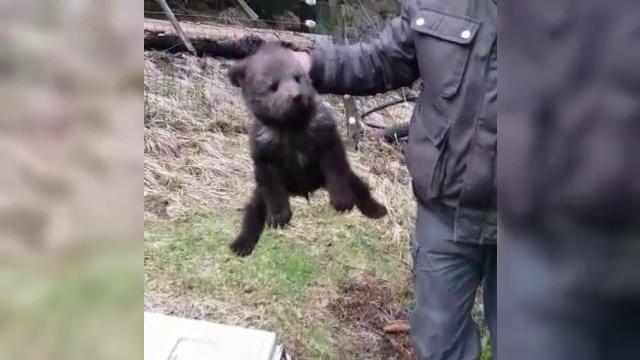 Un pui de urs de numai câteva luni, rătăcit de mama lui, a fost salvat dintr-un ...