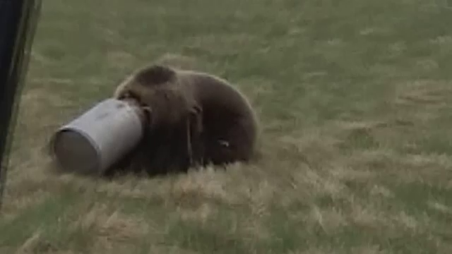 Un ursuleţ pofticios a rămas cu capul înțepenit într-o cutie metalică. ...