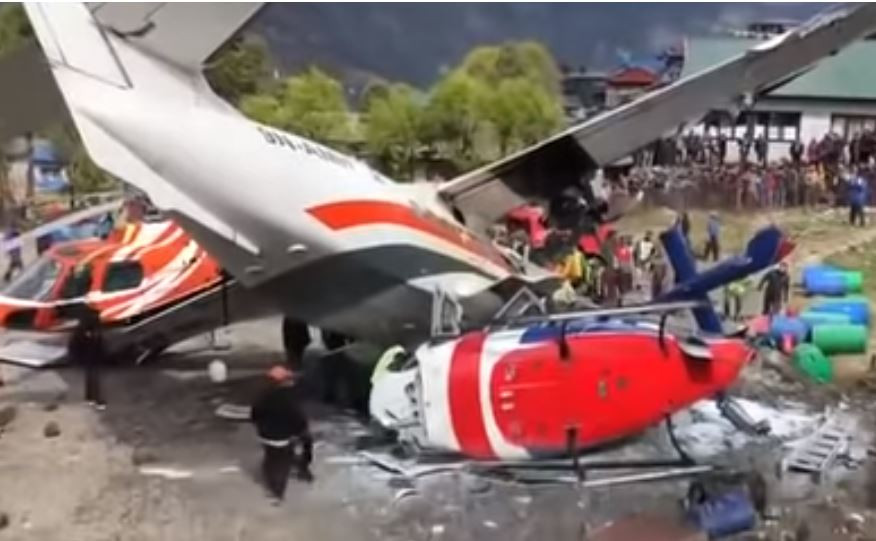 Un avion de mici dimensiuni a lovit, duminică, un elicopter, pe aeroportul Tenzing ...