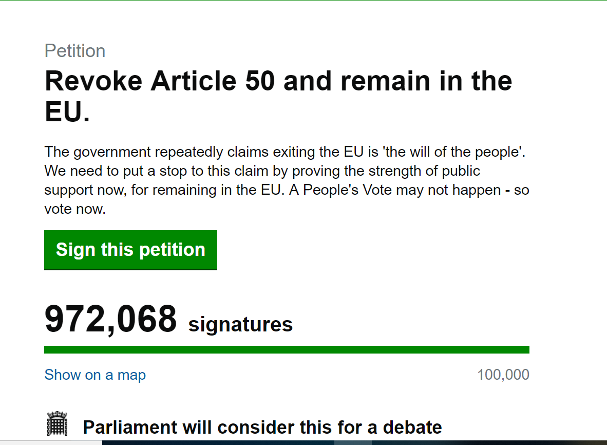 Peste 970.000 de persoane au semnat o petiție prin care cer Guvenului condus de Theresa ...