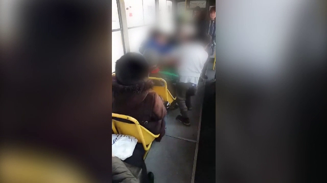Cei doi copii, de 13 şi 14 ani, aflaţi în tramvai, îşi împart pumni ...