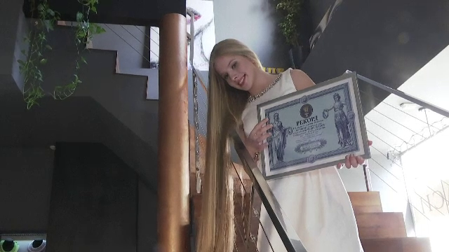Fata care poate călca pe propriul păr. O elevă de liceu din Kiev deține recordul pentru ...