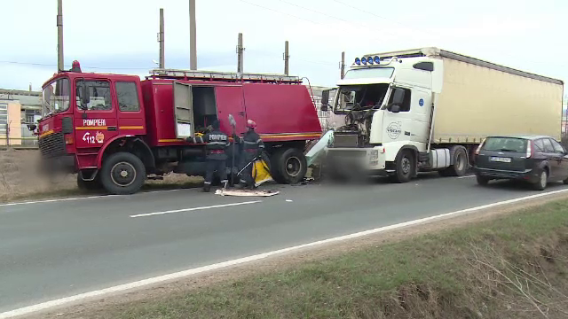 O autospecială a pompierilor a fost lovită violent de un TIR în Dâmbovița, pe ...