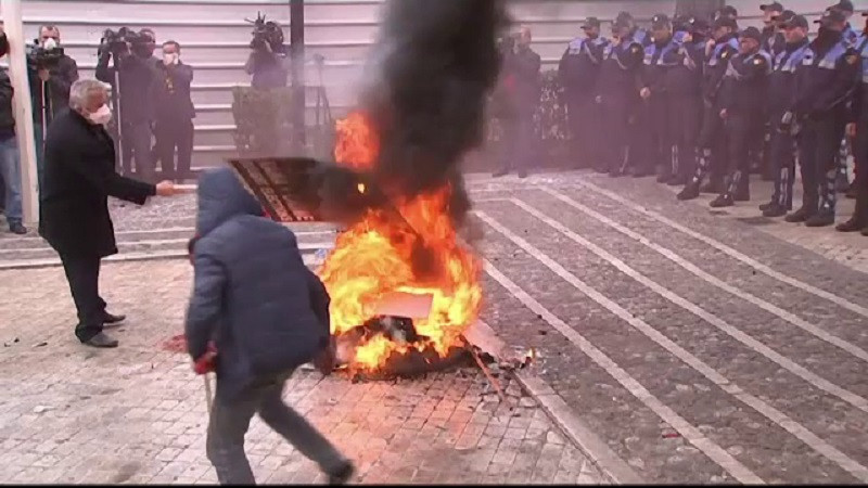 Mii de protestatari care susțin opoziția albaneză au înconjurat parlamentul de la ...