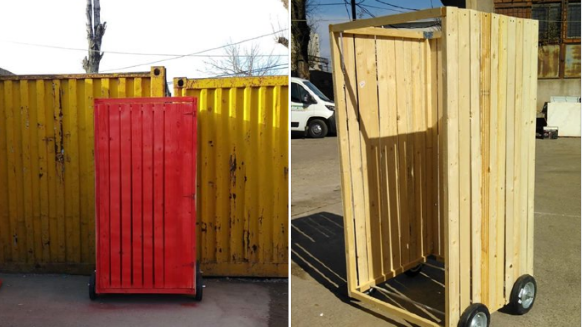 Câțiva protestatari au adus, vineri, o construcție care imită un WC din lemn pe ...