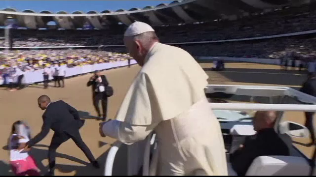 La sosirea pe stadionul din Abu Dhabi, unde a oficiat o slujbă, Papa Francisc a avut ...