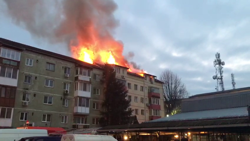 Un incendiu puternic a izbucnit marți seară la mansarda unui bloc din Timișoara
