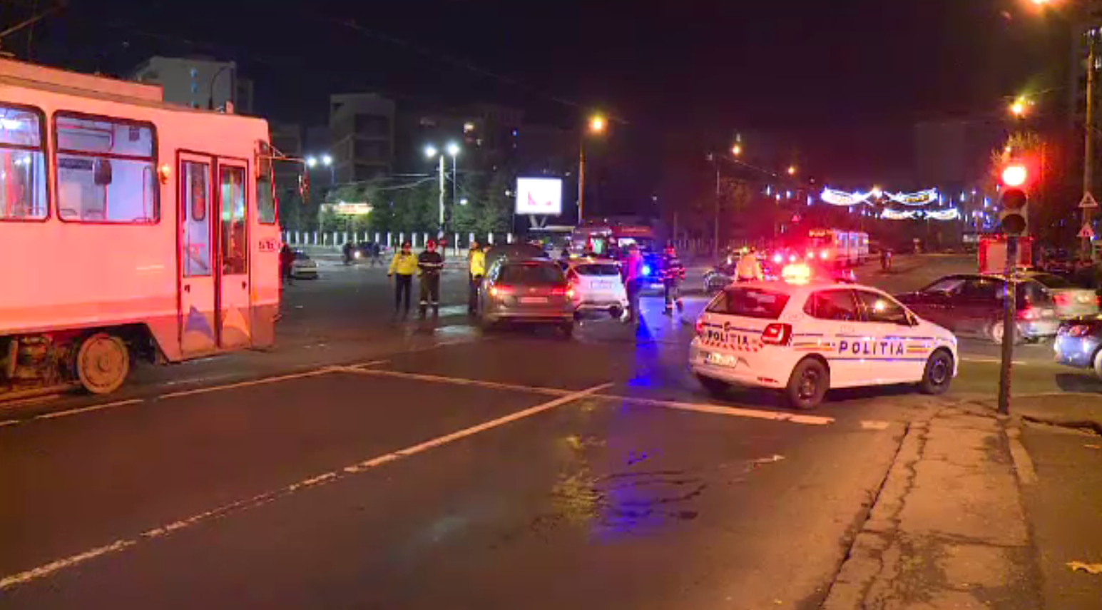 Impact violent miercuri seară într-o intersecție din București, unde două mașini ...