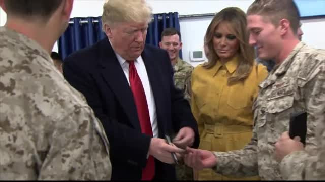 Donald Trump şi prima-doamnă au făcut miercuri seară o vizită fulger în Irak.