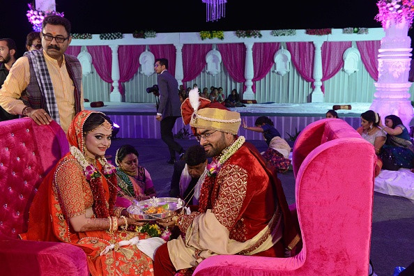 Sute de mirese orfane de tată din India au luat parte la o ceremonie de căsătorie ...