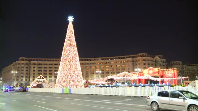 Milioane de beculeţe au scăldat joi seară Piaţa Constituţiei. Un brad imens ornat cu 4000 ...