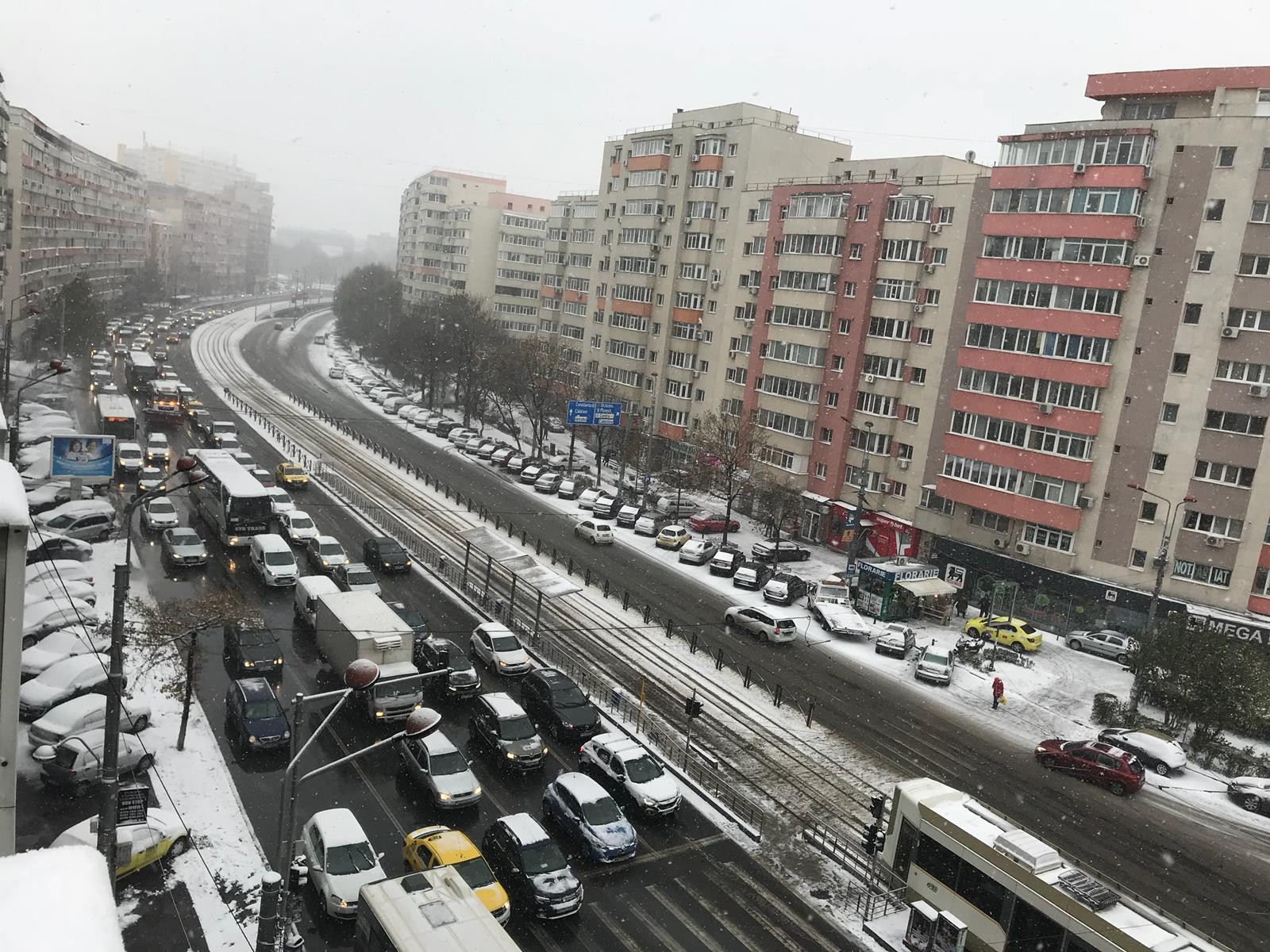 Imagini după primul cod de ninsoare în București în această iarnă.