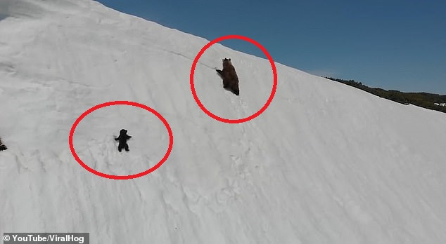 Un filmuleț care surprinde eforturile unui pui de urs de a ajunge înapoi la mama ...