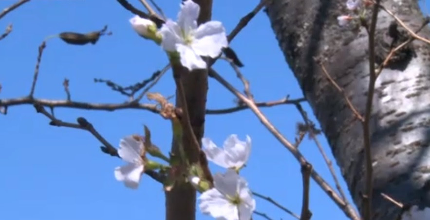 Florile delicate de cireş, care de obicei marchează sosirea primăverii în Japonia, ...