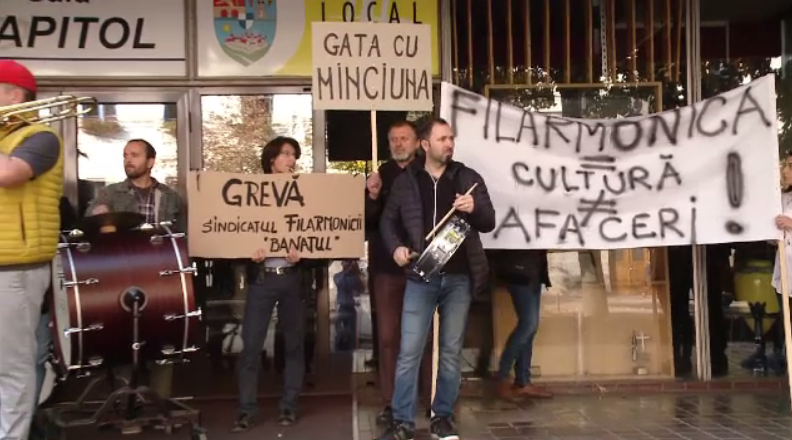 Într-o grevă muzicală au intrat angajaţii Filarmonicii Banatul, care au protestat ...
