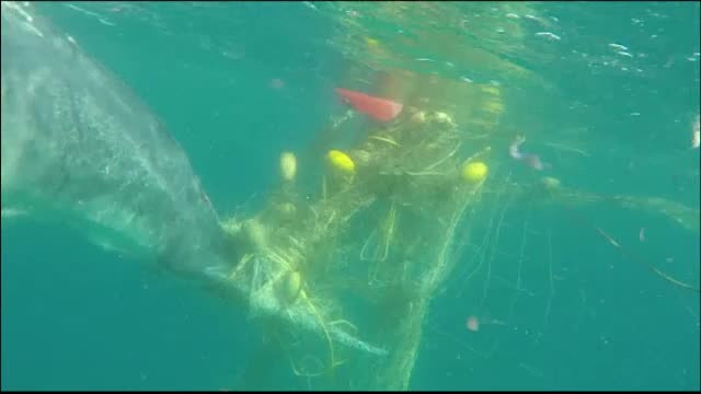 Un pui de balenă s-a încurcat într-o plasă anti-rechini în Queensland. ...