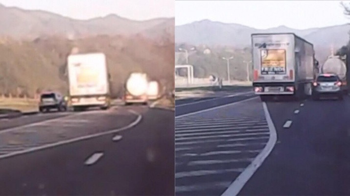 Imagini de coșmar filmate pe DN7. Șoferul unui camion şi cel al unui SUV s-au şicant ...