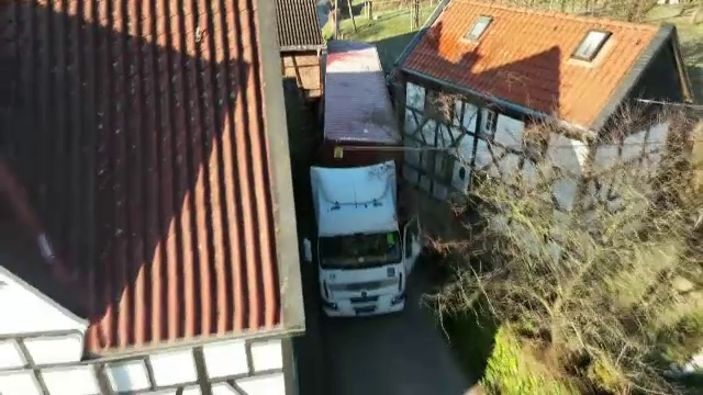 O zonă pitorească din orășelul german Solingen, cu un drum îngust și case istorice, ...
