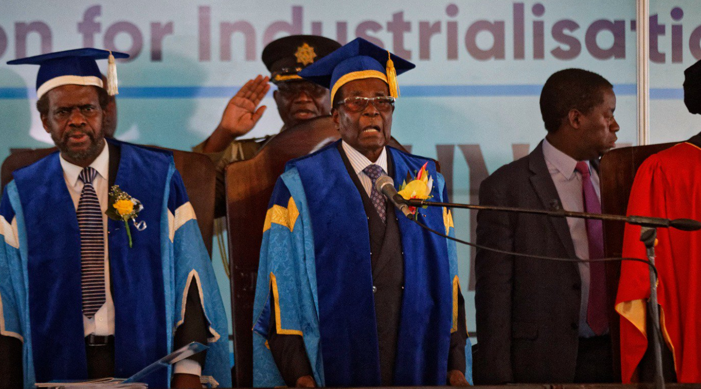 Preşedintele zimbabwian Robert Mugabe şi-a făcut vineri prima apariţie în public de ...