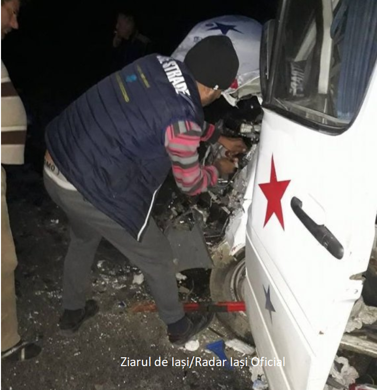 FILMUL accidentului din Iaşi. Un TIR s-a ciocnit cu un microbuz. 11 persoane, transportate la spital