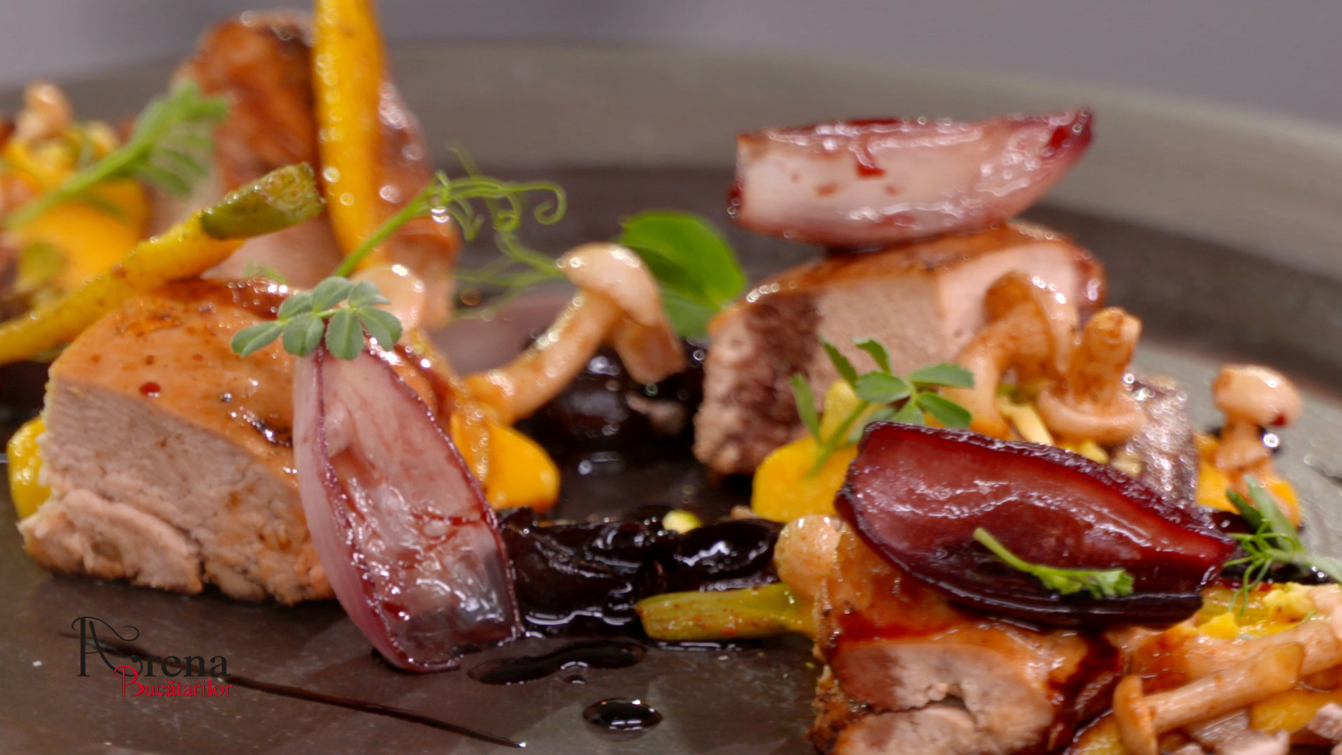 Piept de fazan cu dulceata de merisoare si ciupercute