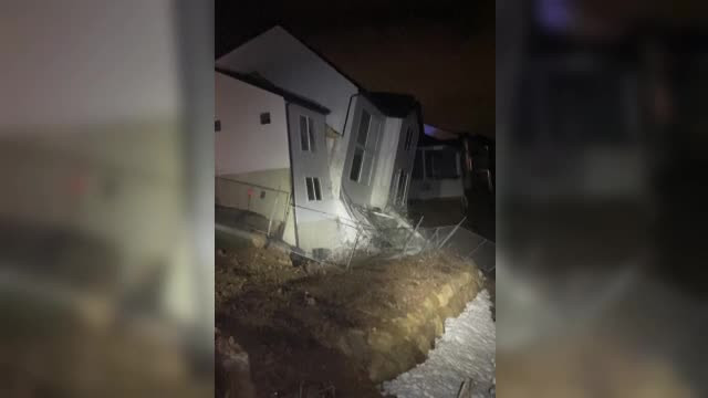 Două case construite în vârful unei coline într-o suburbie a orașului ...