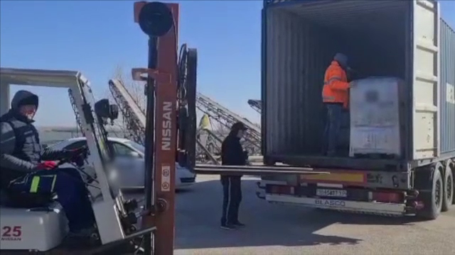 Mai multe camioane încarcate cu zeci de paleți cu apă au plecat spre orașe din ...