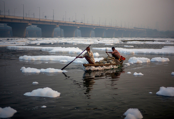 Un strat de spumă toxică a acoperit o parte a unui râu sacru lângă capitala ...