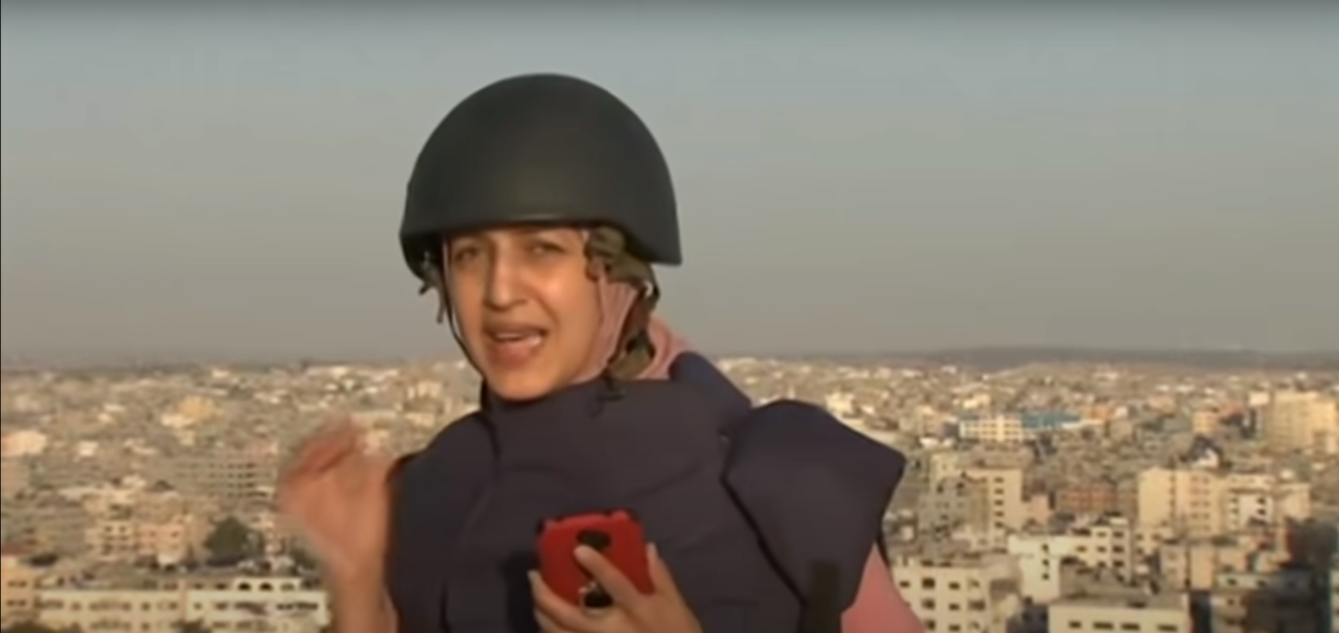 Jurnalista Youmna Al Sayed relata live de pe acoperilul unui bloc pentru Al Jazeera ...
