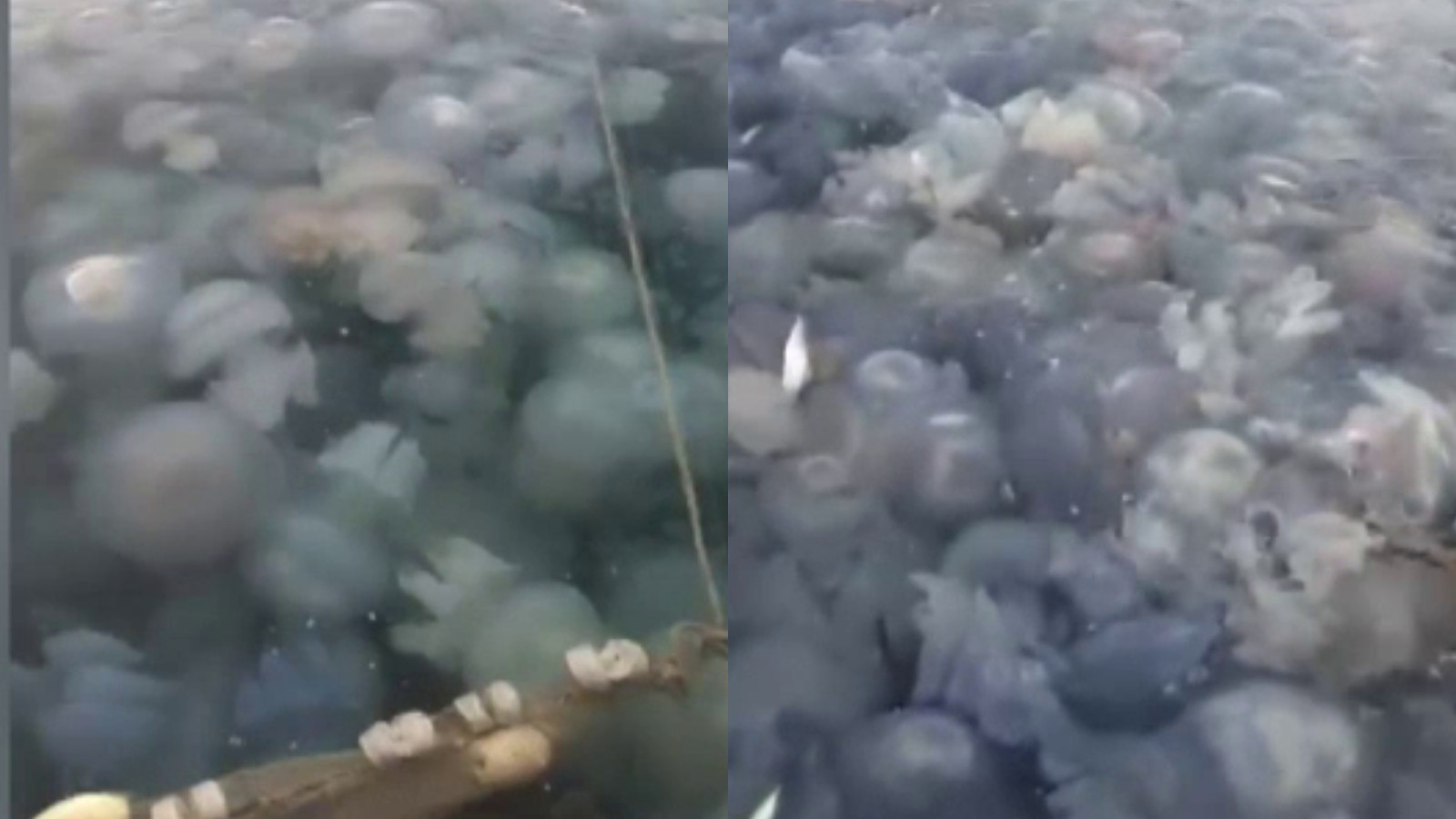 Imagini spectaculoase pe litoral. Mii de meduze ajung în plasele pescarilor aproape ...