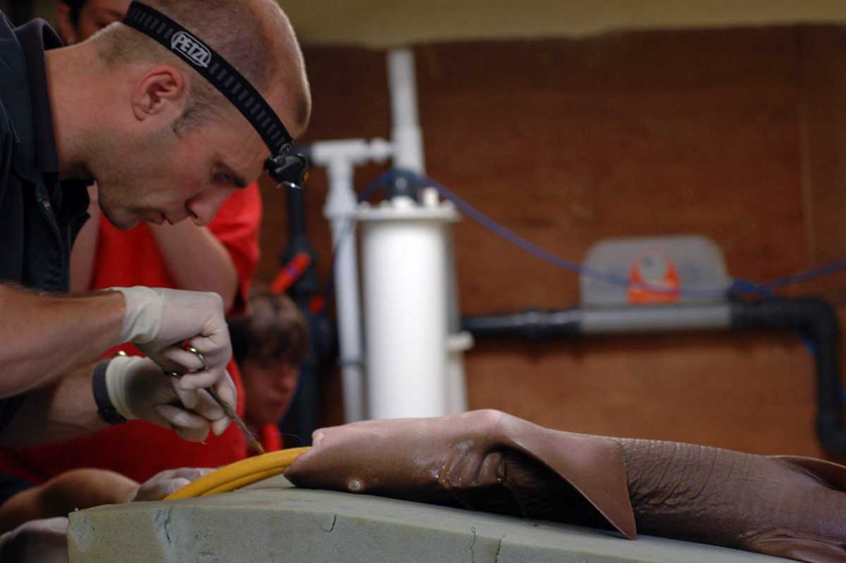Rechinul de aproape 2 metri a fost vedeta de televiziune si in 2009, atunci cand a fost supusa unei interventii chirurgicale riscante, pe uscat, pentru a-i fi indepartat un carlig de pescuit din mandibula superioara.