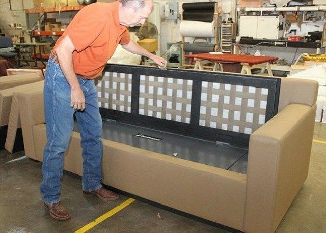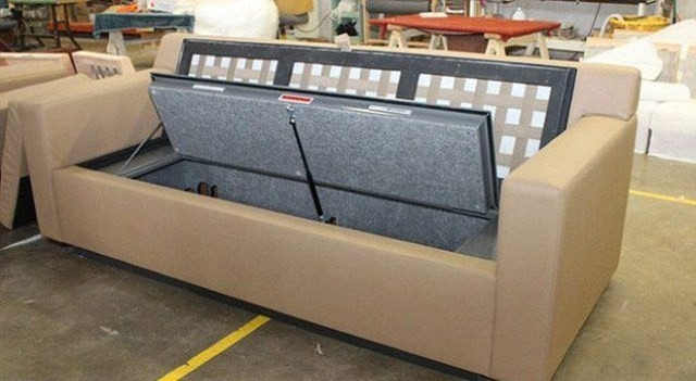 Canapeaua a fost scoasa la vanzare intr-un magazin de mobila din Rusia. Iar in interiorul ei intra in jur de 30 de arme de vanatoare.