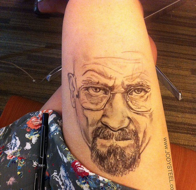 Jody isi deseneaza diferite portrete pe coapsa si incarca pozele pe retelele de socializare. Una dintre cele mai apreciate opere de arta ale tinerei este portretul lui Walter White, protagonistul serialului Breaking Bad.