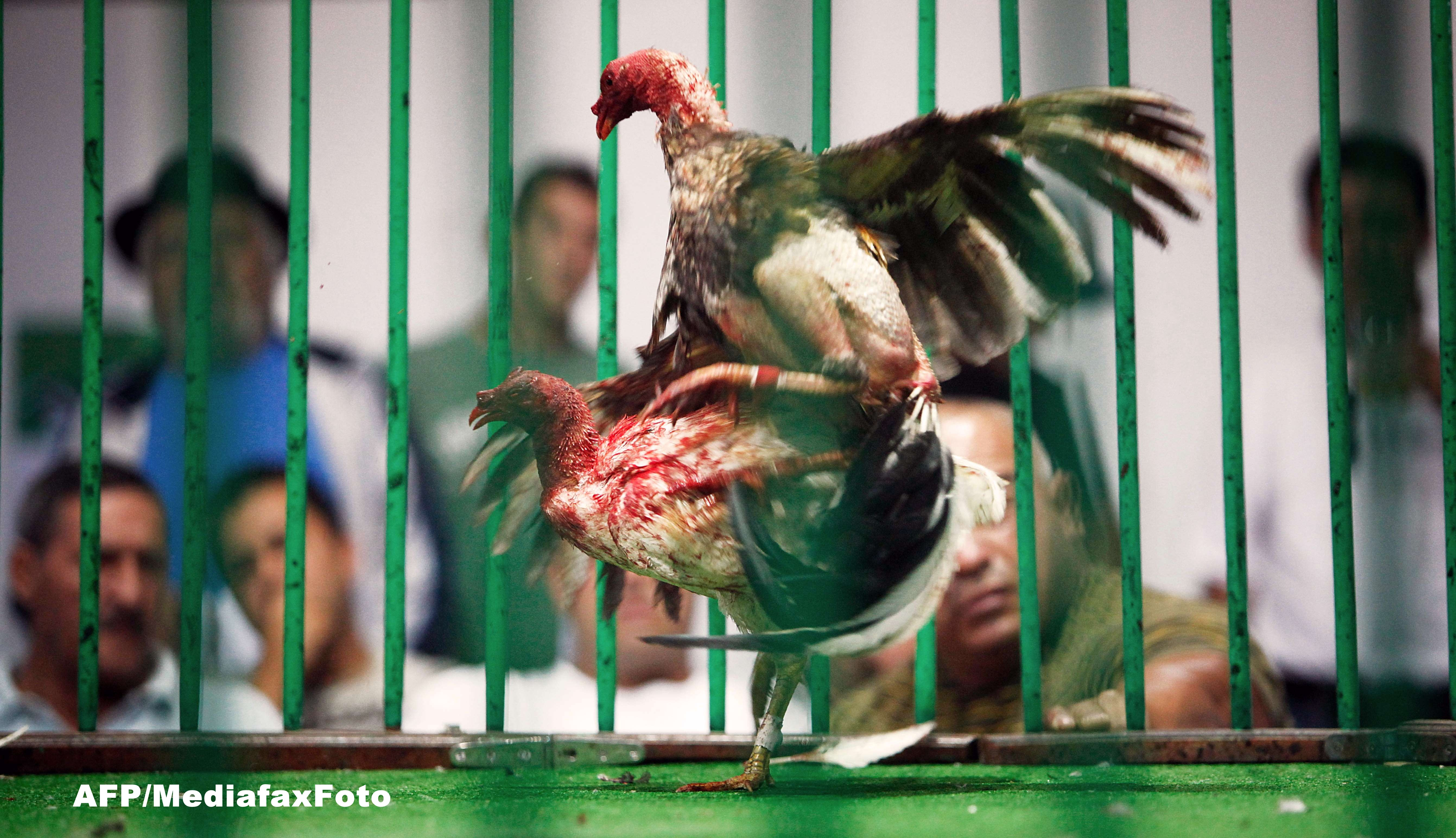 Luptele care se dau intre aceste pasari sunt sangeroase, chiar daca - uneori - nu sunt finalizate prin moartea acestora. Unele tari permit organizarea acestui "sport", altele l-au interzis, insa cei care se pronunta pentru continuarea acestor batai invoca, in general, motive culturale si religioase.