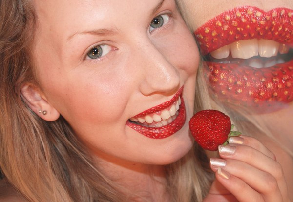 Sandra si-a machiat buzele in asa fel incat sa semene perfect cu un ochi.